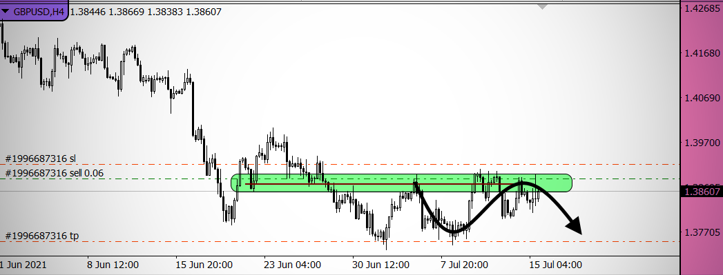 Por lo tanto, abrí una posición corta en este par de divisas. El punto de partida de mi orden de venta fue el nivel de resistencia indicado en la imagen adjunta. Entré al mercado con la ayuda de una orden pendiente. Esta operación tiene una buena relación de pérdidas y ganancias. Por lo tanto, espero poder obtener algún beneficio.