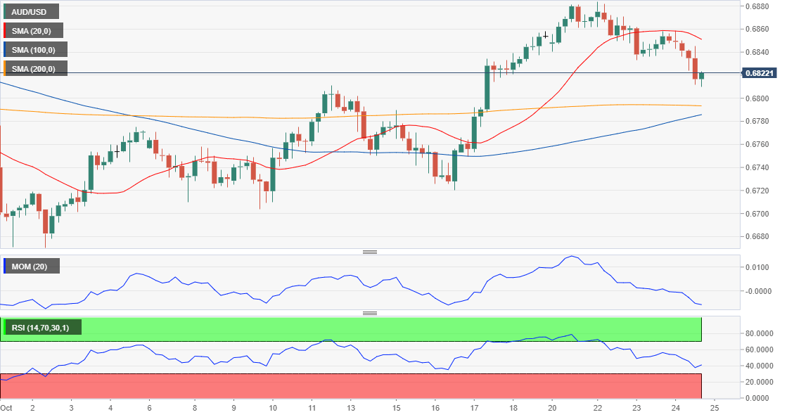 Los vendedores están esperando una entrada por debajo de la cifra redonda de 0.6800 para apuntar a un nivel de media móvil simple (SMA) de 21 días de 0.67852, mientras que es menos probable que los compradores intervengan a menos que el mes de septiembre supere los 0.6900.