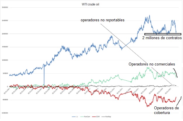 Los operadores están reduciendo el volumen de posiciones largas en WTI y los operadores de cobertura están recortando posiciones cortas.