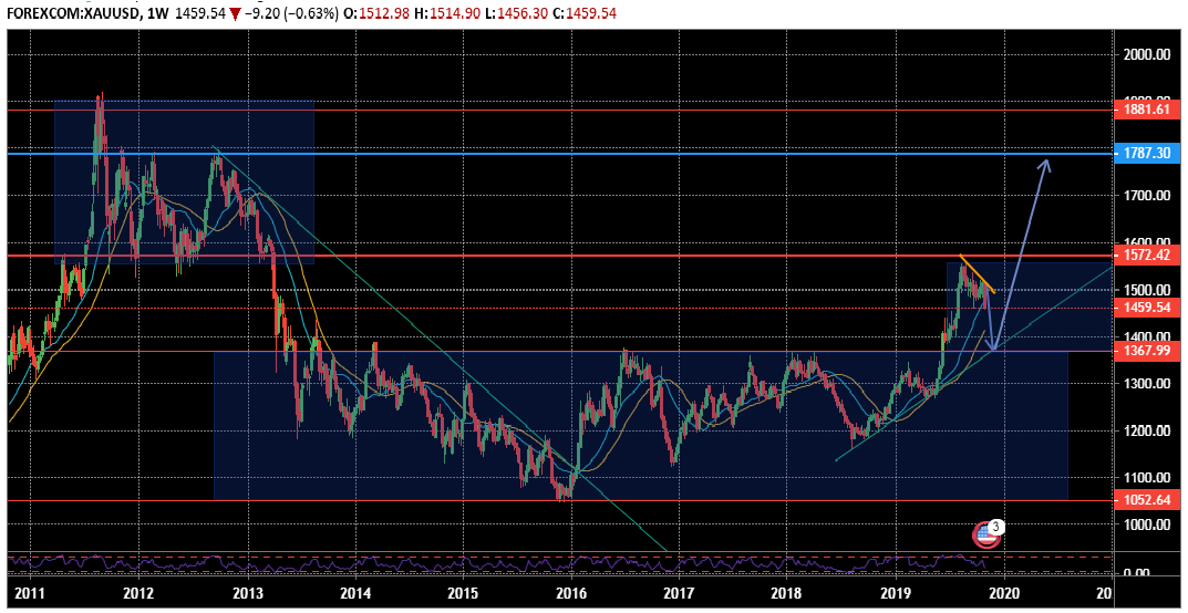 Sin embargo en caso de que todo siga igual creo que es más probable que vayamos hacia arriba, hacia la EMA a 50 días que sería el primer objetivo relevante. Eso quiere decir que podríamos subir hasta el nivel en 1488$, y luego posiblemente hasta el nivel en 1500$.