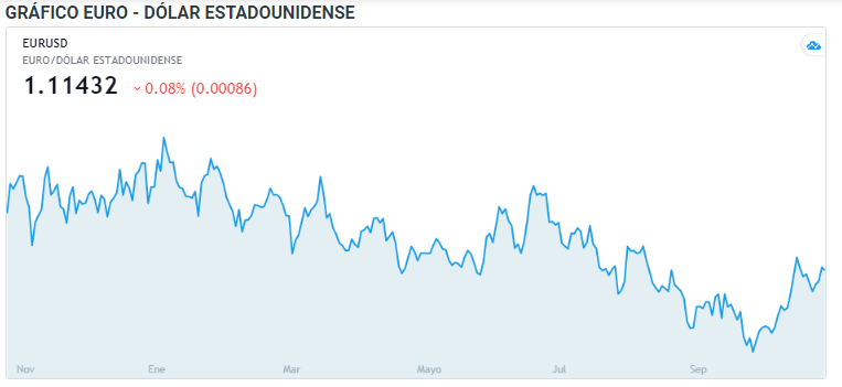 El euro mostró una tendencia a la baja frente al dólar estadounidense durante la semana anterior. El tipo de cambio del euro dólar estadounidense disminuyó un 0,8%, rompiendo tres semanas consecutivas de ganancias. El par cerró el viernes a US $ 1.1080. El euro está subiendo frente al dólar estadounidense a medida que comienza la nueva semana.