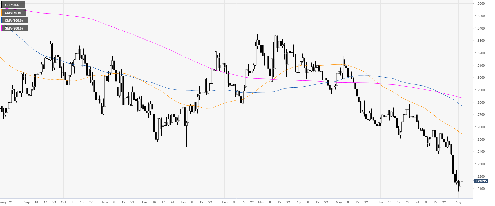 El par GBP/USD se está estabilizando cerca de mínimos de varios meses intentando crear una corrección por encima de 1.2100, mientras que está por debajo de sus principales promedios móviles diarios (DSMA).