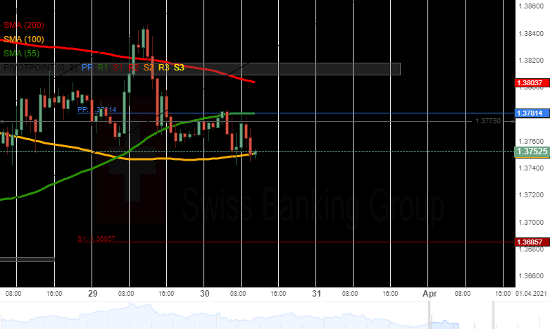 Si la tasa pasa el soporte del promedio móvil simple de 100 horas, podría buscar soporte en la marca de 1.3700 o en el punto de pivote simple S1 semanal en 1.3686.