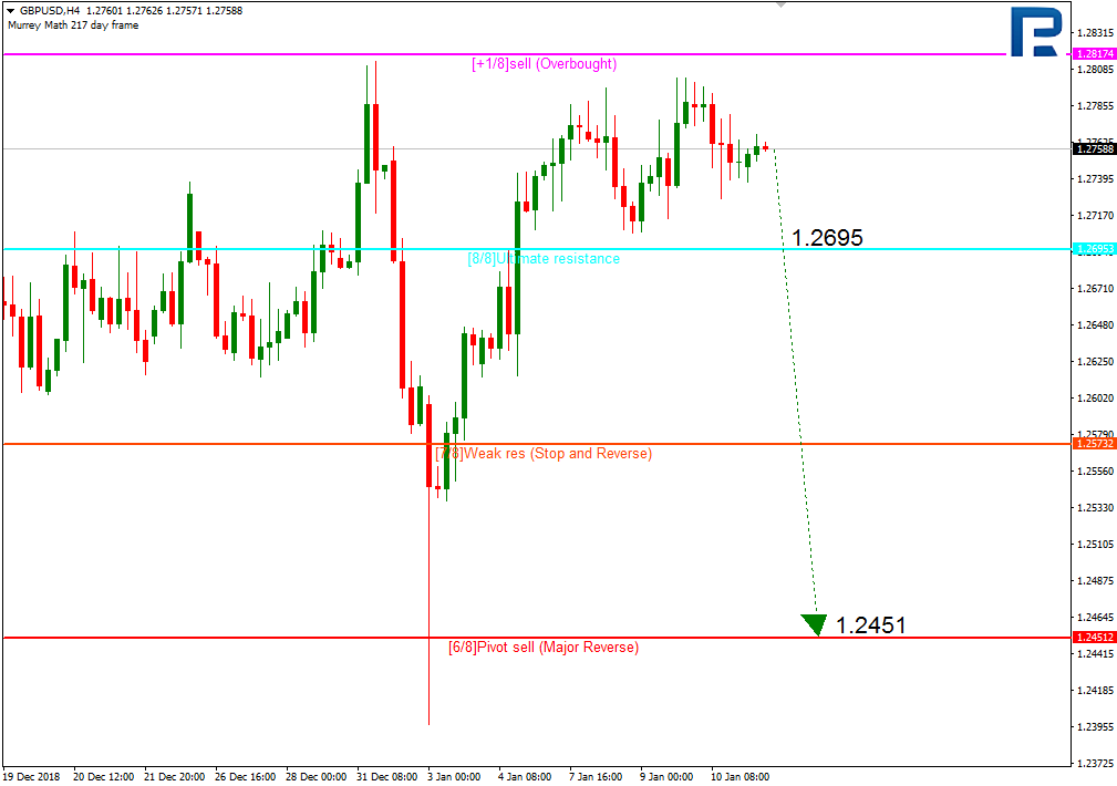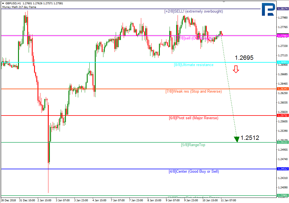 Como podemos ver en el gráfico H4, el GBPUSD está operando dentro de la "zona de sobrecompra". En este caso, se espera que el precio rompa el nivel 8/8 y caiga hacia el soporte en el nivel 6/8 .