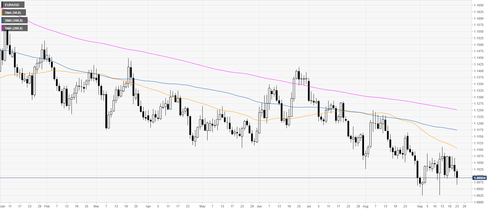 En el gráfico diario, la moneda común se cotiza en una tendencia a la baja por debajo de los principales promedios móviles simples diarios (DSMA). En la sesión europea, el Markit PMI en la zona euro, Alemania y Francia decepcionaron las expectativas, mientras que en la sesión de Nueva York, el presidente del BCE, Mario Draghi, reiteró que el BCE está listo para actuar.