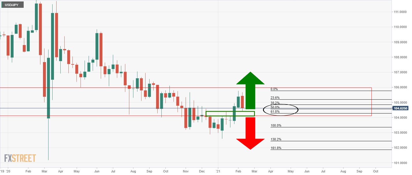 El USD / JPY se está moviendo en una trayectoria alcista en los marcos de tiempo más bajos en una corrección del último retroceso bajista del impulso alcista diario.