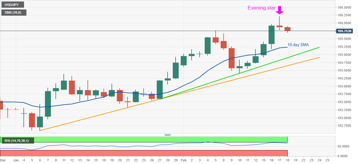 Los alcistas del USD / JPY están preparados para actualizar el máximo mensual cerca de 105,75 a menos que caigan por debajo de una línea de soporte de seis semanas, actualmente alrededor de 104,50.