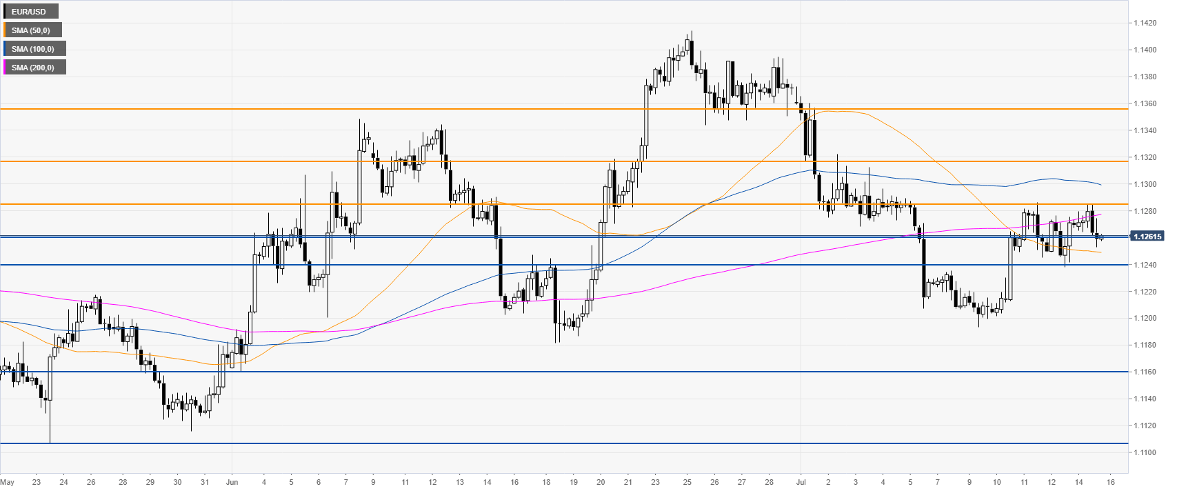 El EUR/USD está en una tendencia bajista por debajo del nivel de 1.1300 y su promedio móvil simple de 200 días (DSMA).