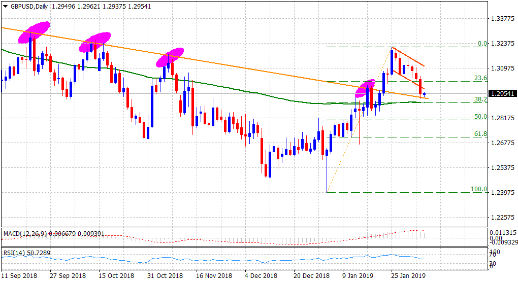 El par bajó a un nivel intradiario bajo de 1.2925, pero logró recuperar algunos pips y ganó un respiro durante la sesión asiática el miércoles en la noticia de un posible Brexit retrasado. Según un informe de Telegraph, varios ministros del gabinete han discutido en secreto los planes para retrasar el Brexit en ocho semanas, desde la fecha límite actual del 29 de marzo hasta el 24 de mayo. Sin embargo, el aumento no tuvo ninguna convicción sólida ya que los participantes del mercado esperan nuevas actualizaciones y aspecto del Brexit remitir a la reunión de la PM Theresa May del Reino Unido con el Presidente de la Comisión Europea, Juncker, el jueves. Además de los desarrollos de Brexit, BoE Super Thursday colaborará para infundir volatilidad en los pares de libras esterlinas.