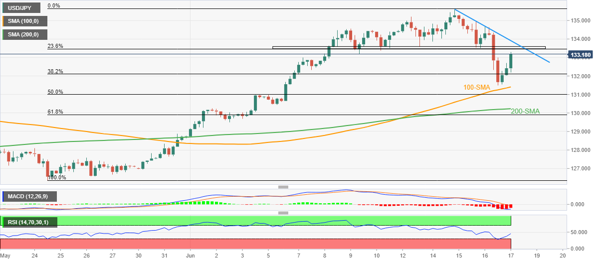 Al hacerlo, el par de yenes estira el rebote de 100-SMA mientras se acerca a un área de resistencia horizontal de una semana, que rodea 133.50-60.