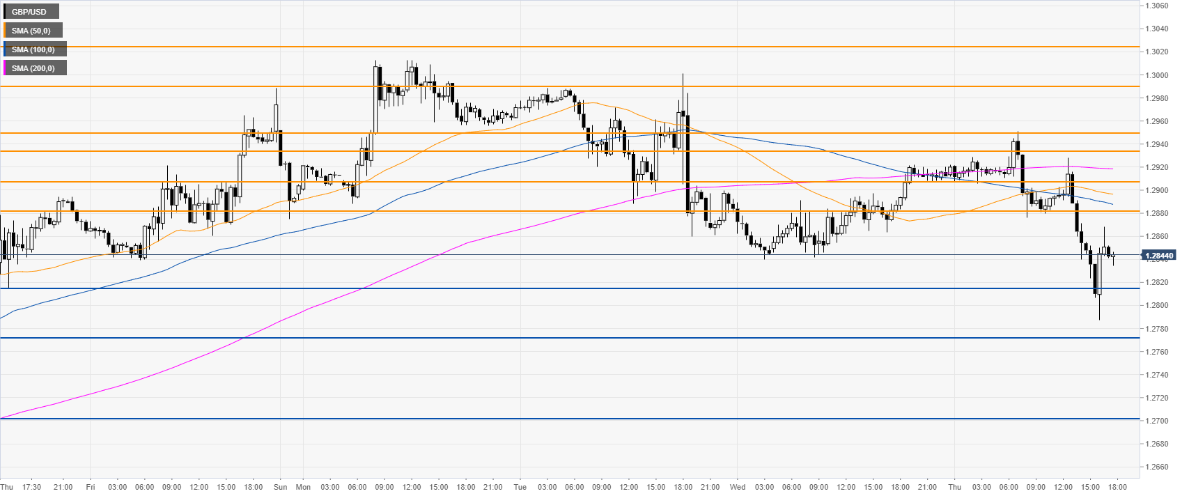El GBP/USD cotiza por debajo de sus principales SMA, lo que sugiere un impulso bajista en el corto plazo. La resistencia se ve en 1.2880 y 1.2908, de acuerdo con el indicador de confluencias técnicas.