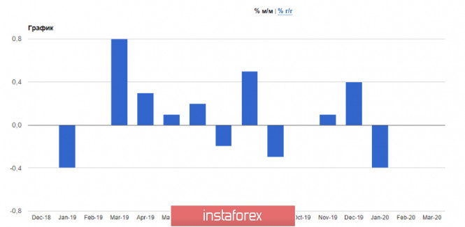 En cuanto al gasto del consumidor en Francia en febrero de este año, disminuyó un 0.1% en comparación con marzo y cayó un 0.6% en comparación con el mismo período en 2019. Aunque se pronostica que el crecimiento del gasto será de 0.7% y 0.5%, respectivamente. Una caída tan fuerte en el indicador solo puede indicar que en marzo podemos esperar una mayor reducción en el gasto del consumidor debido al fortalecimiento de la pandemia de coronavirus. En cuanto a la inflación, según el informe, el índice preliminar de precios al consumidor (IPC) en Francia en marzo de 2020 se mantuvo sin cambios en comparación con febrero y aumentó solo un 0,6% interanual. El índice se pronosticó en 0.3% y 0.9%, respectivamente. El índice de precios al consumidor armonizado preliminar para las normas de la UE aumentó un 0,7% anual en marzo después de aumentar un 1,6% en febrero.