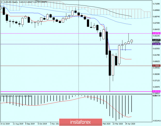 Mientras tanto, a juzgar por la "semana", el par tiene todas las posibilidades de una reversión o una continuación del retroceso correctivo. En el segundo escenario, los siguientes posibles objetivos de crecimiento serán la línea Tenkan del indicador Ichimoku, que corre a 0.6165. El objetivo de corrección más lejano es Kijun, ubicado en 0.6271. Sin embargo, el precio aún está lejos de ser el último. Creo que la tarea mínima para los toros en el "Aussie" será cerrar el comercio actual de cinco días por encima del importante nivel psicológico y técnico de 0.6000.
