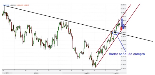 reboten desde el borde inferior del canal y luego reanuden su movimiento alcista hacia los niveles de 1,1910 y 1,1920.