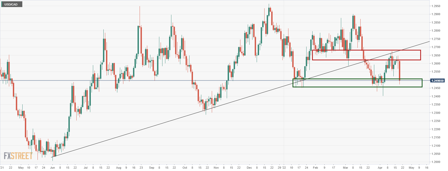Luego de un repunte intradiario a niveles justo por encima del nivel psicológico de 1.2500, el par USD/CAD bajó por segundo día consecutivo el miércoles y se vio presionado por una combinación de factores. El fuerte tono ofrecido en torno al dólar estadounidense se consideró un factor clave que actuó como un obstáculo en medio del aumento de los precios del crudo, que tiende a beneficiar al dólar canadiense vinculado a las materias primas.
