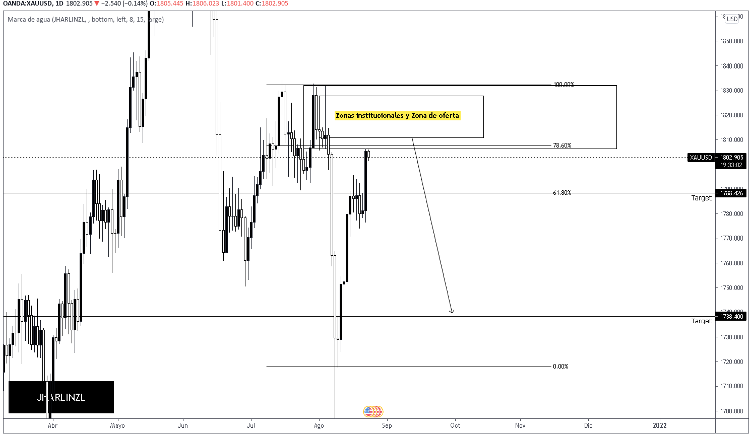 Dentro de la zona de retroceso a largo plazo hay una zona de retroceso a corto plazo entre $ 1792.60 y $ 1782.50.