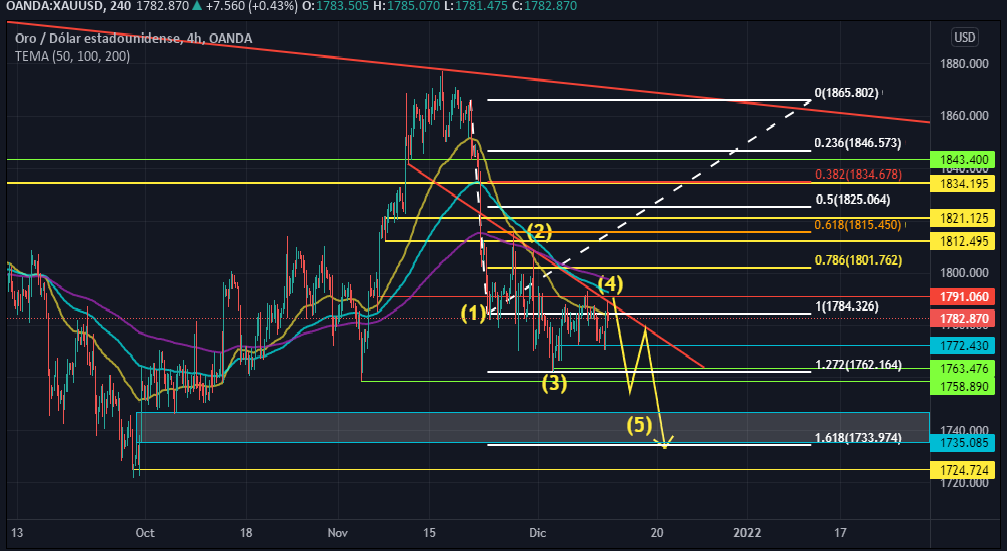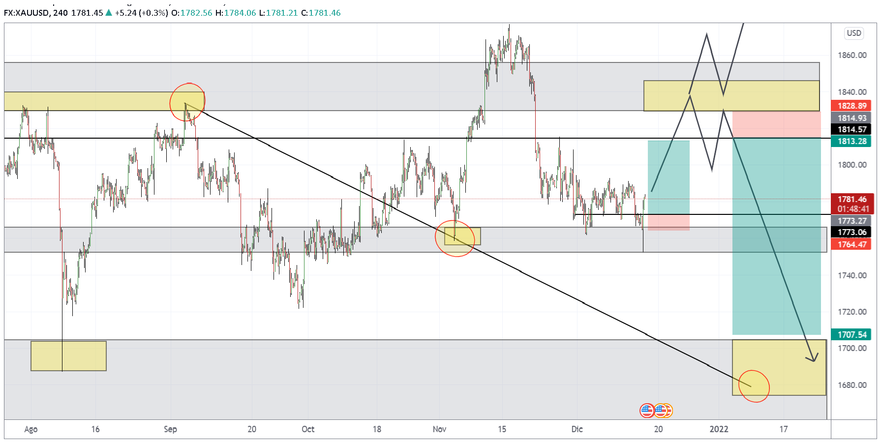 Si el metal consigue un quiebre sobre este nivel, podría incrementar el potencial alcista con siguiente objetivo en el área de $1850.
