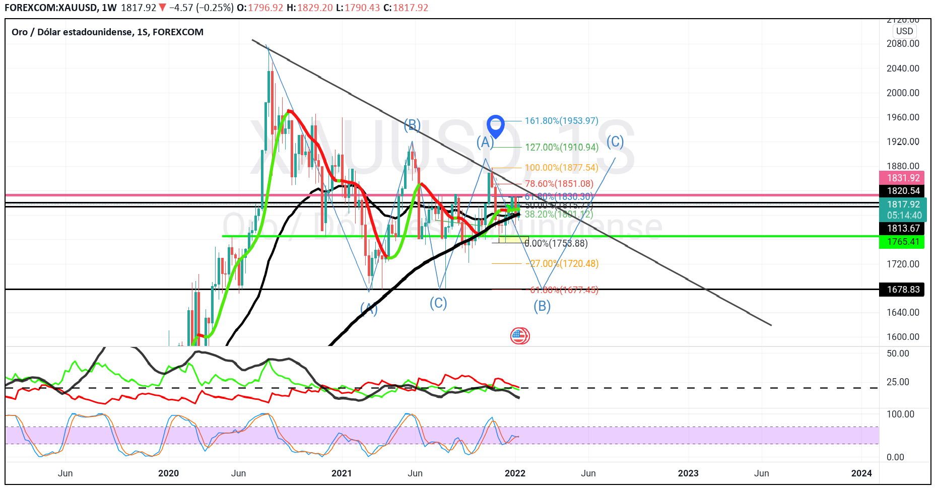 Que tal colegas, el precio del oro rebotó fuertemente a la baja luego de enfrentar una sólida resistencia en 1825.15, para quedar atrapado entre esta resistencia y el soporte de 1797.00, lo que nos hace preferir quedarnos al margen hasta que el precio confirme romper uno de estos niveles para detectar claramente el próximo destino.