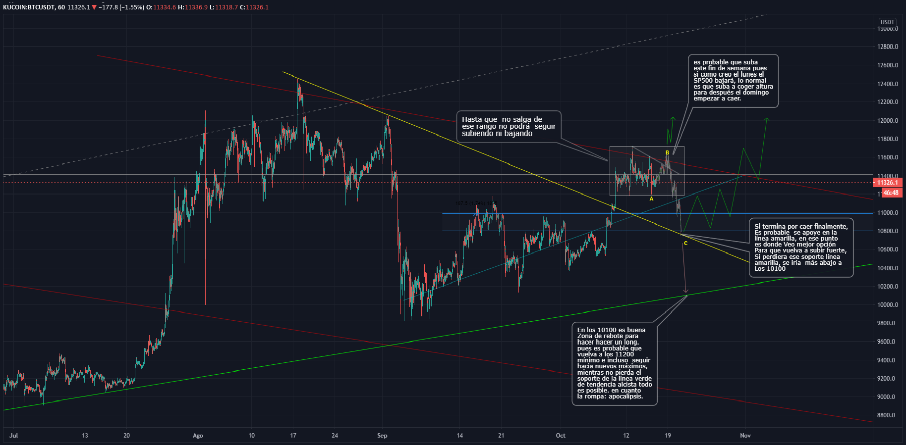 Hay señales que me parecen indicar el final de esta mini corrida alcista, este análisis se invalida si el precio supera la zona de los 12400-12600, aunque de momento mientras no supere la zona de 12100, este análisis es vigente, los targets marcados deben considerarse como objetivos a la baja, en ningún momento representan zonas de compra, excepto quizás por la zona de 9,250 USD, donde en caso de cumplirse seria una zona ideal de entrada en largo esperando un potencial rebote.