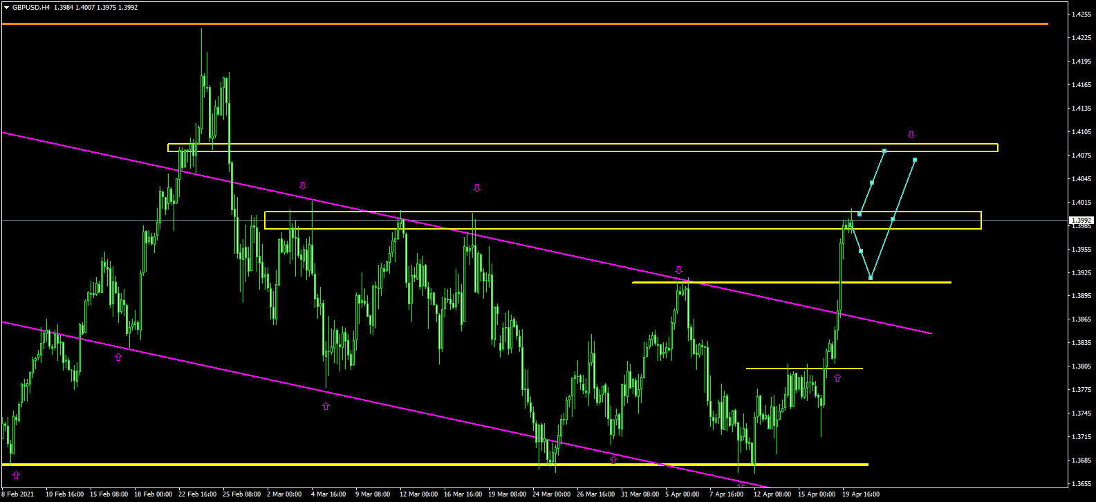 Si el precio sube directamente a 1,4080, los operadores podrán abrir posiciones cortas, contando con el posterior movimiento significativo bajista del par.