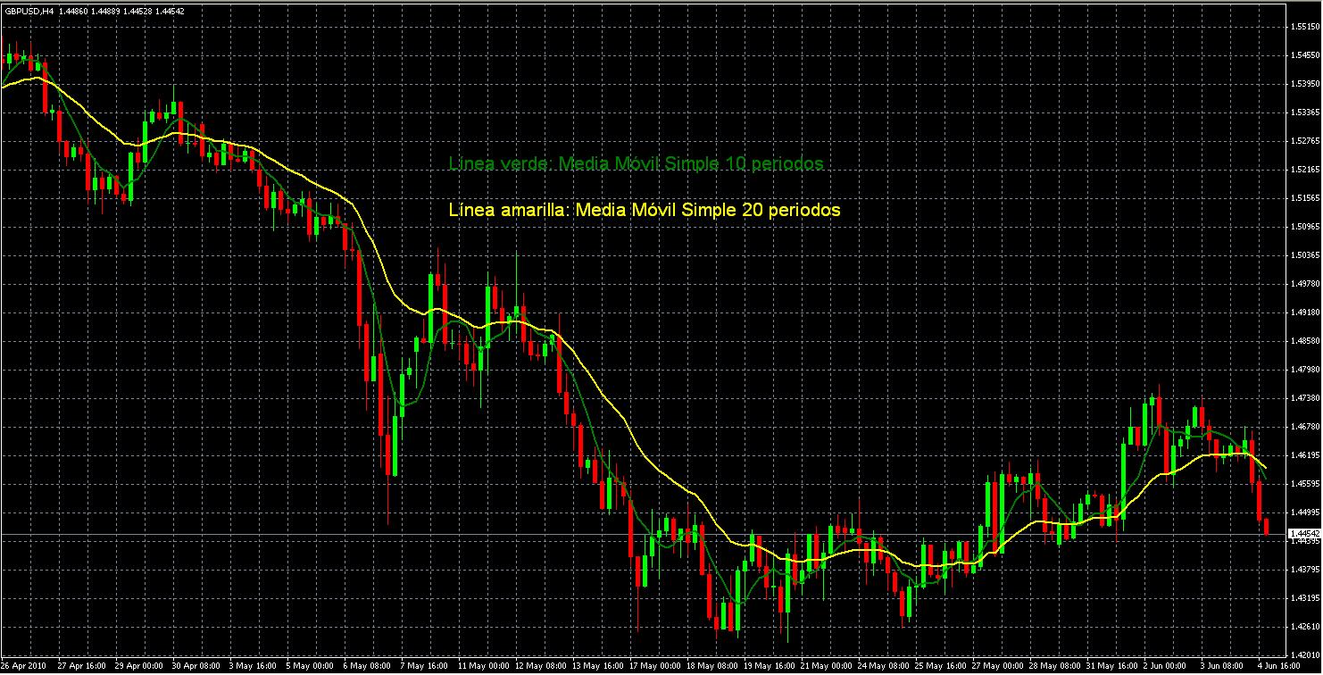 Las medias móviles son de los indicadores más empleados en el análisis técnico y nos indican el promedio del precio en un punto determinado de tiempo con respecto a un periodo definido de tiempo. Se emplea el término de móvil ya que reflejan el último promedio de precios mientras que al mismo tiempo se mantienen unidas a la misma medida de tiempo durante toda la serie.